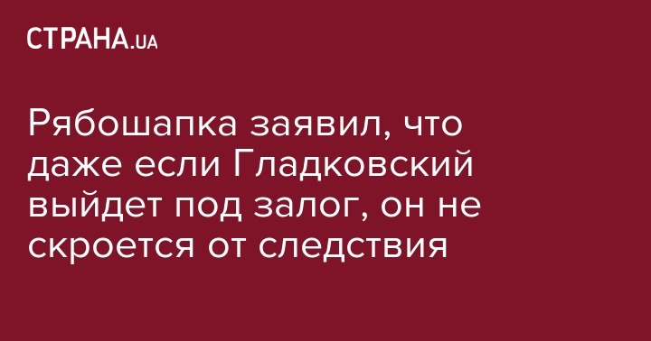 Генеральный прокурор Украины Руслан Рябошапка уверен, что даже в случае внесения залога за бывшего первого заместителя секретаря СНБО Олега Гладковского, подозреваемому придется сотрудничать  с органами предварительного расследования и он не сможет скрыться. Об этом сказал генпрокурор сказал в комментарии после решения Высшего антикоррупционного суда, распространенный вечером 19 октября на странице ГПУ.
