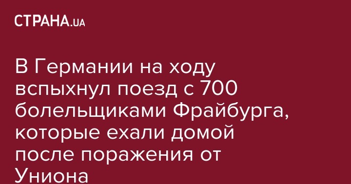 В субботу вечером, 19 октября, в Германии загорелся поезд с 700 футбольными фанатами команды Фрайбург (команда на выезде проиграла берлинскому Униону со счетом 2:0 - Ред.), которые возвращались после матча домой. В итоге три человека пострадали, их доставили в лечебное учреждение. Об этом сообщает Berliner Morgenpost.
