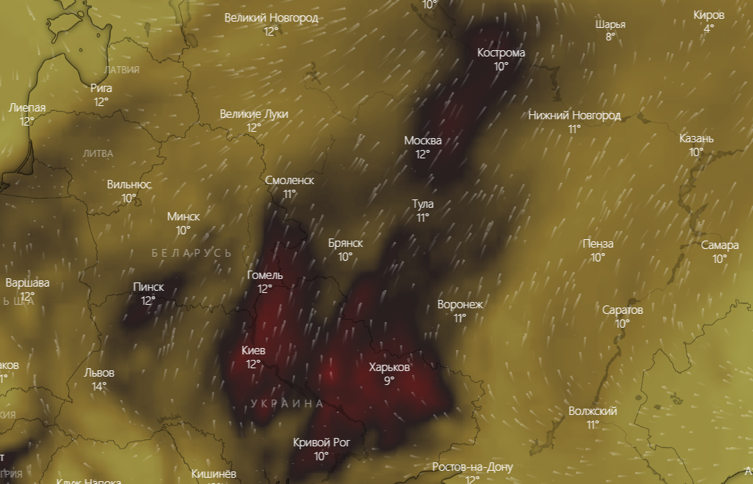 Над Украиной висит огромное облако угарного газа, аналогов которому нет в Европе. Об этом свидетельствуют данные онлайн-сервиса Windy, который анализирует движение воздушных масс по всему миру.