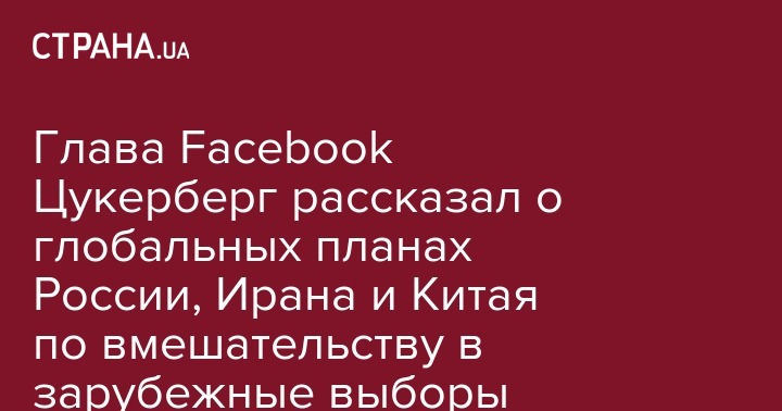 Глава Facebook Цукерберг рассказал о глобальных планах России, Ирана и Китая по вмешательству в зарубежные выборы