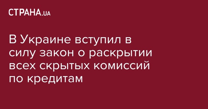 В Украине вступил в силу закон о раскрытии всех скрытых комиссий по кредитам