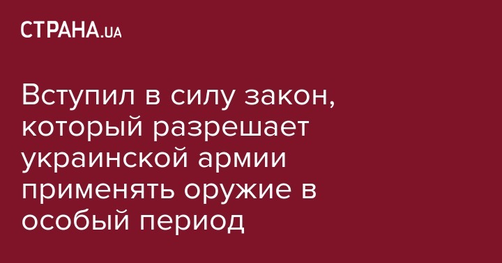В воскресение, 20 октября, вступил в силу закон, который разрешает ВСУ применять оружие в особый период, пишет Лига.