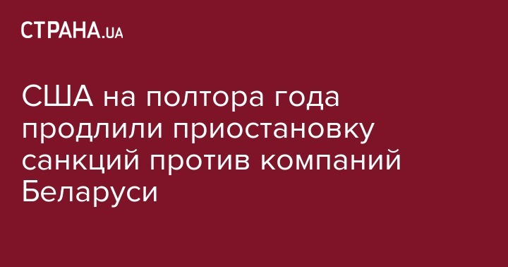Американский Минфин продолжил период приостановления санкций против девяти белорусских компаний на полтора года. Соответствующую лицензию под номером 2G Министерство финансов выдало во вторник, пишет сайт министерства.