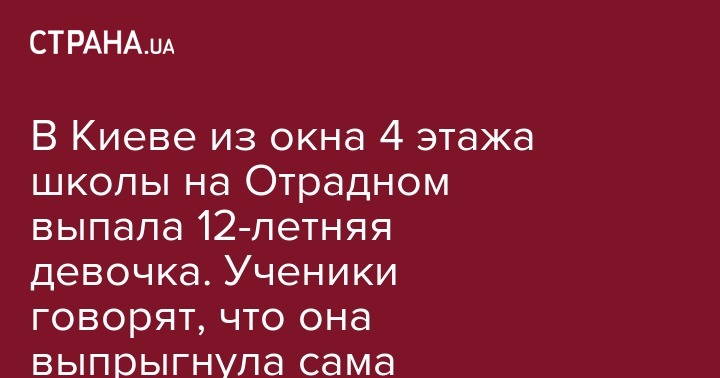 В Киеве из окна 4 этажа школы на Отрадном выпала 12-летняя девочка. Ученики говорят, что она выпрыгнула сама