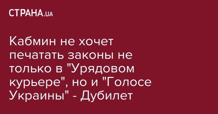 Кабмин планирует отказаться от официальной публикации законов и нормативных документов не только в правительственном печатном издании "Урядовый курьер", но и парламентском – "Голосе Украины" и инициирует общественное обсуждение их будущего. Об этом сообщил министр Кабмина Дмитрий Дубилет в среду в Facebook.