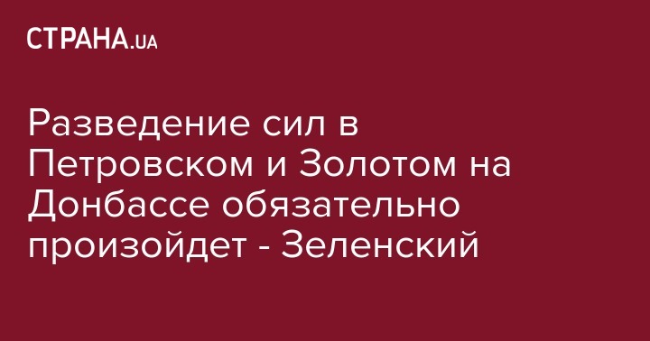 Разведение сил в Петровском и Золотом на Донбассе обязательно произойдет - Зеленский