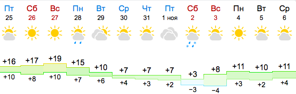 28 октября, понедельник, днем +15, ночью +7.