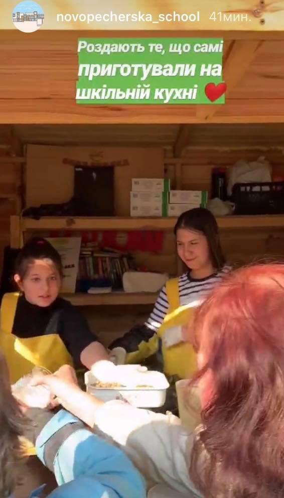 По информации "Страны", ребята присоединились к одной из точек питания для пожилых людей "Обед без бед" от проекта "Жизнелюб" (сооснователь бизнесмен Гарик Корогодский). Их в столице 13 в разных районах. Каждый день там кормят бесплатно горячими обедами. Еду готовят рестораны, расположенные поблизости, а на пункте работают волонтеры. На сей раз обед был приготовлен на кухне "Новопечерской школы".