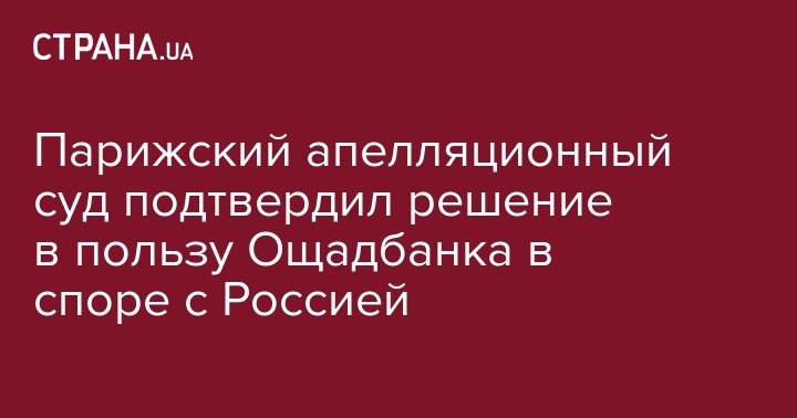 Парижский апелляционный суд вынес решение в пользу Ощадбанка в споре о взыскании средств с России. Там отклонили попытку приостановить принудительное исполнение решения международного арбитража. Об этом сообщает пресс-служба Ощадбанка в четверг, 24 октября.