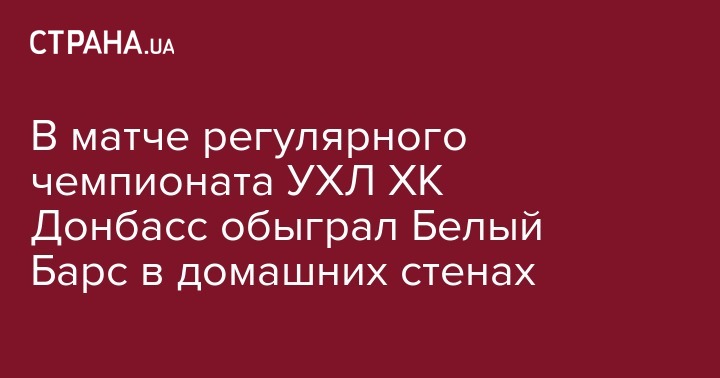 В матче регулярного чемпионата УХЛ ХК Донбасс обыграл Белый Барс в домашних стенах