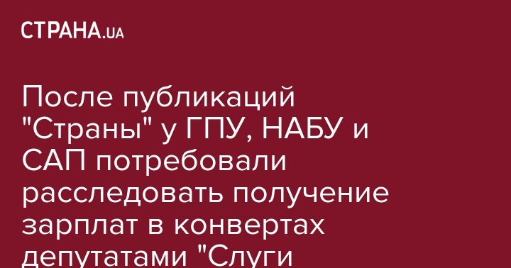 После публикаций "Страны" у ГПУ, НАБУ и САП потребовали расследовать получение зарплат в конвертах депутатами "Слуги народа"