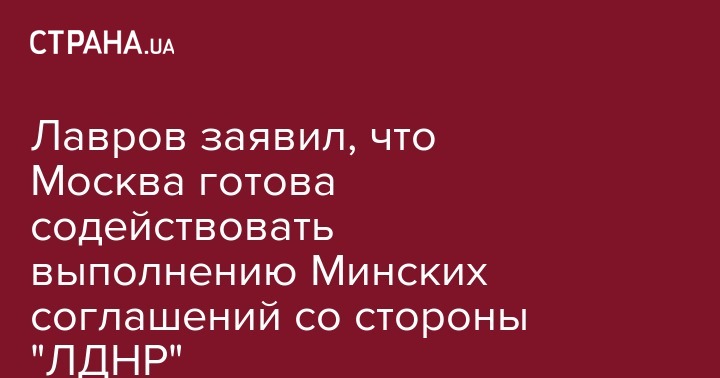 Россия готова содействовать выполнению Минских соглашений так называемыми "ЛНР" и "ДНР". Об этом со ссылкой на министра иностранных дел РФ Сергея Лаврова пишет ТАСС.