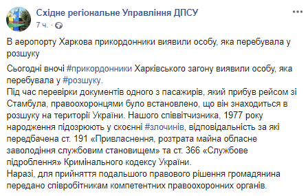 Скриншот: Facebook/Східне регіональне Управління ДПСУ