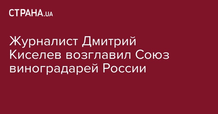 Российский тележурналист, ведущий программы "Вести недели" Дмитрий Киселев стал председателем Союза виноградарей и виноделов России. Об этом сообщает РИА "Новости".