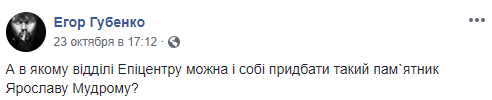"А в каком отделе Эпицентра можно и себе приобрести такой памятник Ярославу Мудрому?" - спрашивал Егор Губенко.