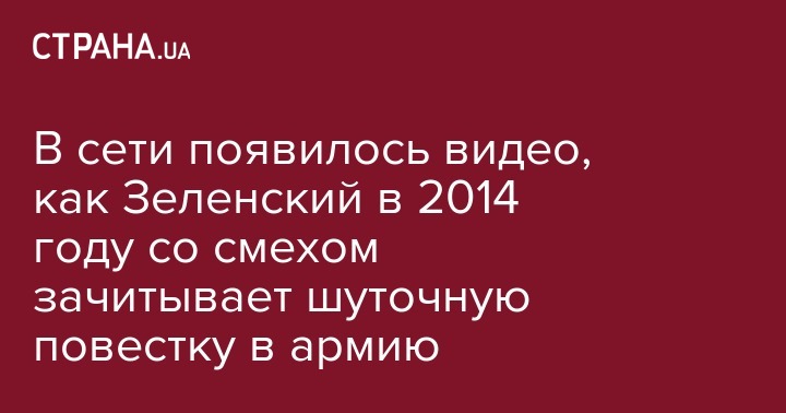 Но на видеозаписи, скорее всего, сделанной во время одной из упомянутых поездок в АТО в 2014 году, Зеленский читает вслух текст своей повестки. Причем часто прерывает чтение смехом.