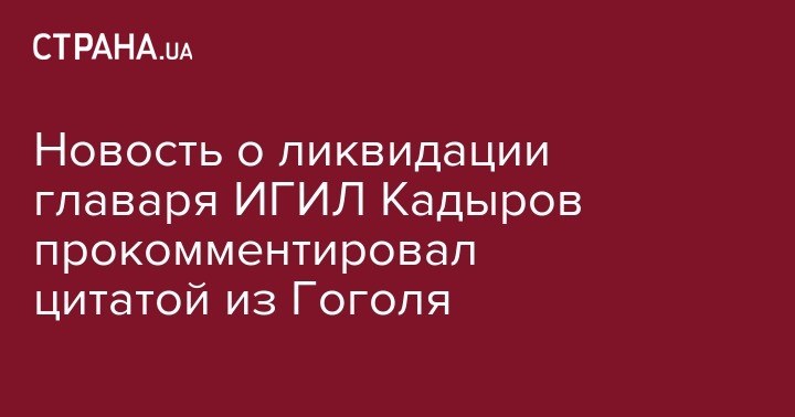 Новость о ликвидации главаря ИГИЛ Кадыров прокомментировал цитатой из Гоголя