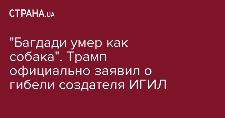 "Багдади умер как собака, как трус. Мир будет лучше без этого злодея", - сказал Трамп.