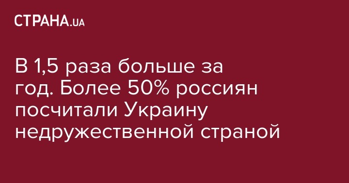 Всероссийский центр изучения общественного мнения провел исследования мнения россиян об отношениях России с другими странами. Украину считают недружественной страной более половины населения России. Об этом говорится на сайте ВЦИОМ