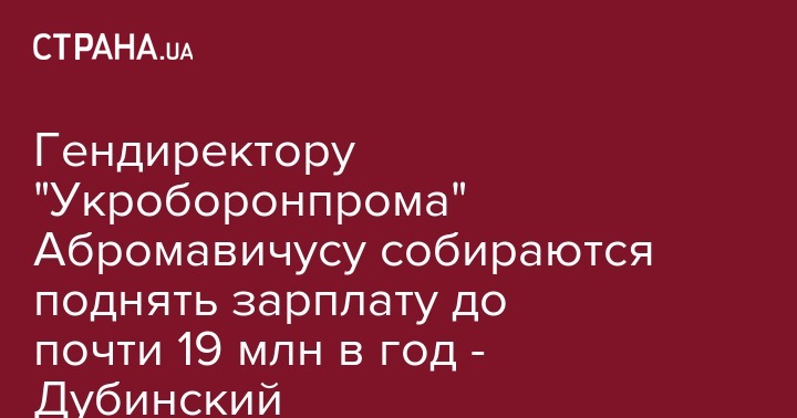 Депутат Верховной Рады Украины от фракции "Слуга народа" Александр Дубинский заявил, что наблюдательный совет "Укроборонпрома" хочет увеличить повысить зарплату генеральному директору концерна Айварасу Абромавичусу в 18 раз до 18,6 млн гривен в год. Об этом Дубинский написал на своей странице в социальной сети Facebook.