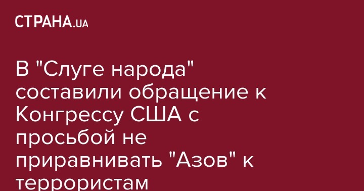 Депутаты фракции "Слуги народа" инициируют подписание обращения к Палате представителей Конгресса США с просьбой не причислять отряд специального назначения "Азов" к террористическим организациям. Об этом свидетельствует проект обращения, разосланный фракциям, передает "Интерфакс-Украина".