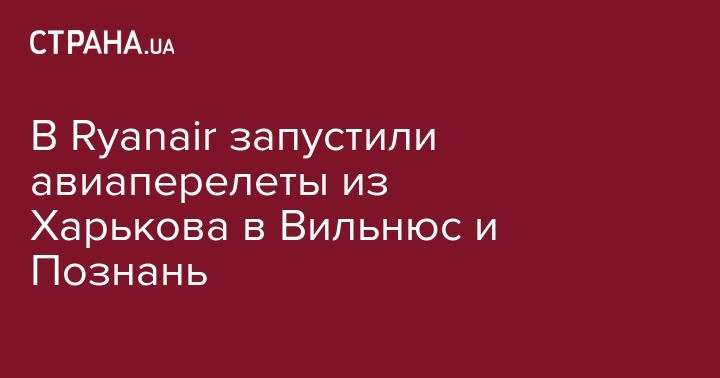 В Ryanair запустили авиаперелеты из Харькова в Вильнюс и Познань