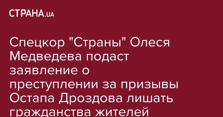 Журналист "Страны" Олеся Медведева намерена подать заявлении о совершении преступления против телеведущего Остапа Дроздова, который в эфире "5 канала" призвал лишить украинского гражданства всех жителей неподконтрольной Украине части Донбасса.