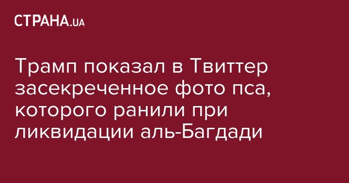 Трамп показал в Твиттер засекреченное фото пса, которого ранили при ликвидации аль-Багдади