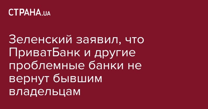 Президент Украины Владимир Зеленский заявил, что проблемные банки не будут возвращать их бывшим хозяевам. Об этом сообщает "Интерфакс-Украина".