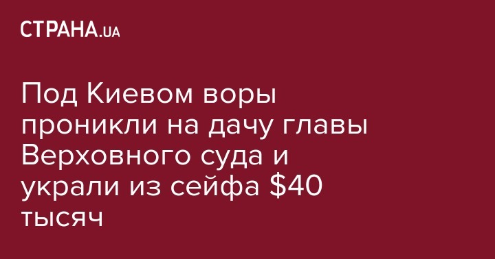 Под Киевом воры проникли на дачу главы Верховного суда и украли из сейфа $40 тысяч
