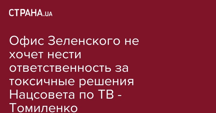 Офис Зеленского не хочет нести ответственность за токсичные решения Нацсовета по ТВ - Томиленко