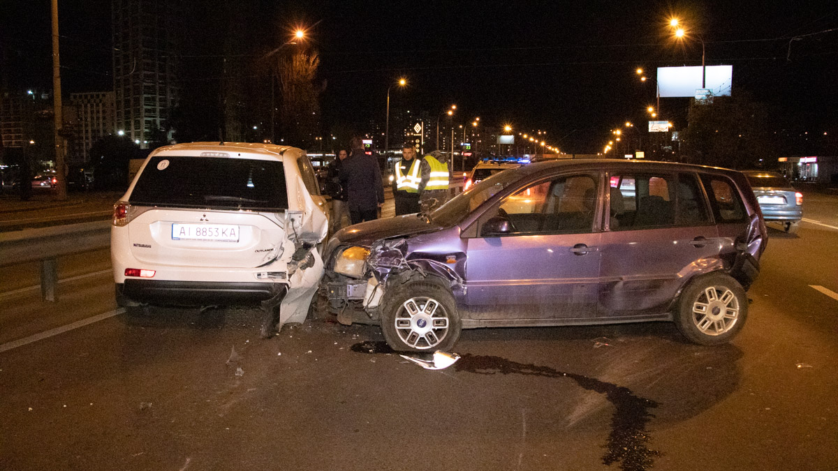 Тройное ДТП в Киеве. Пьяный водитель Volkswagen тормозил 70 метров, но аварии не избежал. Фото и видео