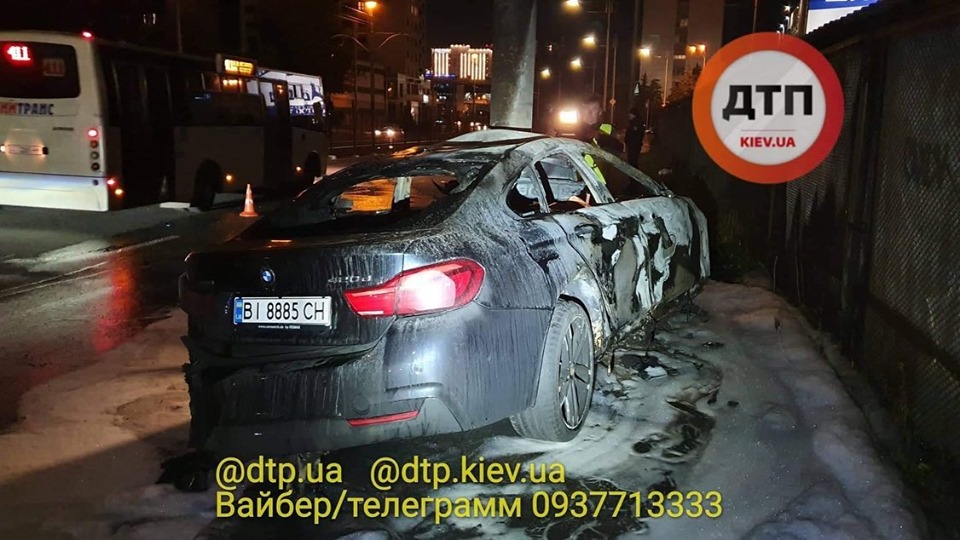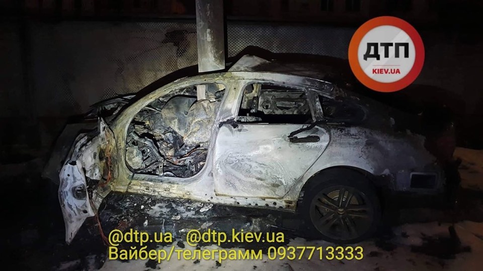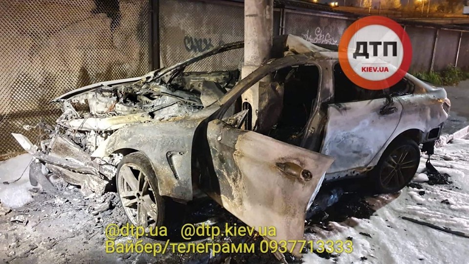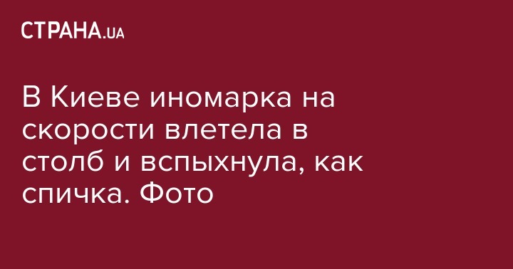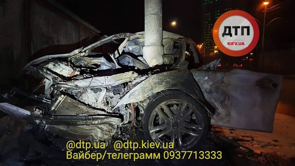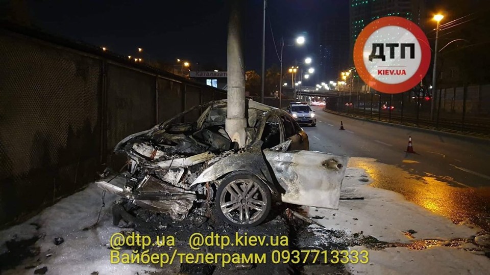 В Киеве иномарка на скорости влетела в столб и вспыхнула, как спичка. Фото