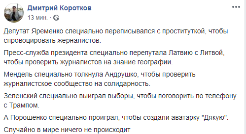 И у многих журналистов возникли сомнения – действительно ли снята переписка Яременко. Но эти сомнения оперативно развеял сам нардеп, фактически все признав.