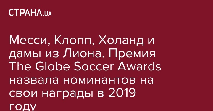 Перестижная премия The Globe Soccer Awards, учрежденная в 2010 году Европейской ассоциацией агентов игроков и Европейской клубной ассоциацией (EFAA и ECA соответственно - Ред.) назвала претендентов на победу в 2019 году.  Торжественная церемония вручения наград пройдет 29 декабря в Дубае (ОАЭ).