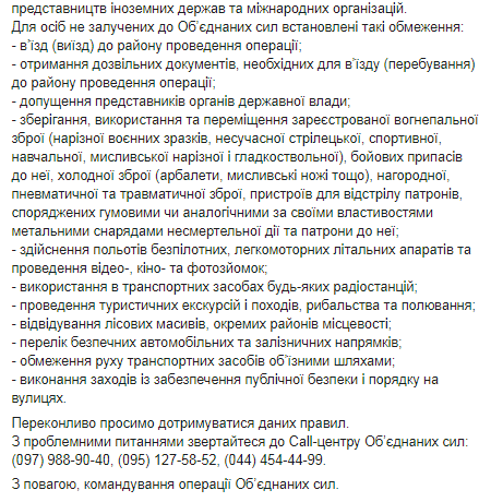 Для лиц, не привлеченных к операции Объединенных сил, установлены ограничения: