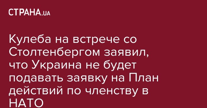 Во время брифинга с генсеком НАТО Йенсом Столтенбергом вице-премьер-министр Украины по вопросам европейской и евроатлантической интеграции Дмитрий Кулеба прямо заявил, что Украина не будет подавать заявку на получение Плана действий по членству в НАТО. Об этом пишет "Интерфакс-Украина"