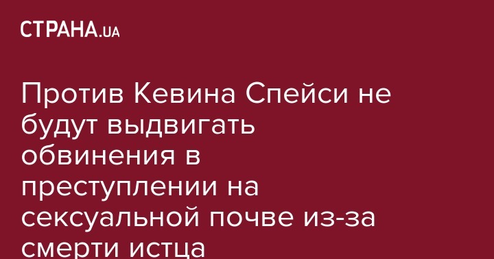 В прокуратуре Лос-Анджелеса не будут выдвигать уголовные обвинения против актера Кевина Спейси по делу о совершенных в 2016 году сексуальных преступлениях. Причина - внезапная смерть истца. Об этом сообщает TMZ.