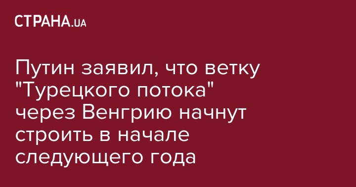 Продление газопровода "Турецкий поток" через Венгрию может быть достроено быстро, потому как его протяженность составит всего 15 километров. Об этом со ссылкой на президента РФ Владимира Путина сообщает "Интерфакс".