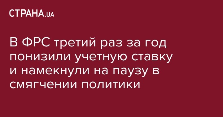В ФРС третий раз за год понизили учетную ставку и намекнули на паузу в смягчении политики