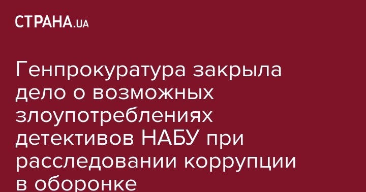 Генпрокуратура закрыла дело о возможных злоупотреблениях детективов НАБУ при расследовании коррупции в оборонке