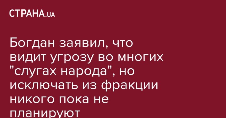 Решений об исключении некоторых нардепов из фракции "Слуга народа" пока нет, хотя угроза видна во многих. Об этом заявил глава Офиса президента Андрей Богдан в интервью "Украинской правде".
