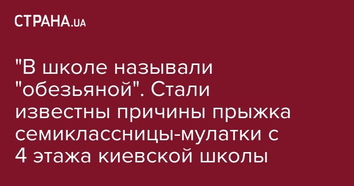 "В школе называли "обезьяной". Стали известны причины прыжка семиклассницы-мулатки с 4 этажа киевской школы