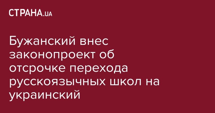Об этом нардеп сообщил в своем телеграм-канале в четверг. Бужанский отмечает, что считает несправедливым, что русскоязычные школы должны использовать украинский язык уже в следующем году, а все остальные школы только с 2023 года. По его словам, данный законопроект призван устранить эту дискриминацию.