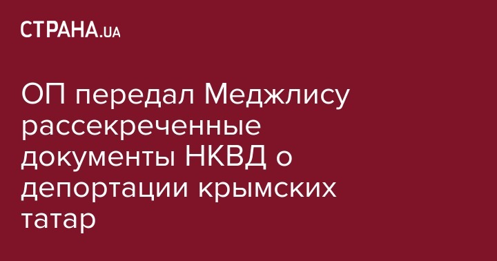 В четверг, 31 октября Офис президента передал Меджлису крымскотатарского народа рассекреченные документы НКВД СССР, касающихся депортации крымских татар в 1944 году. Об этом сообщает пресс-служба главы государства