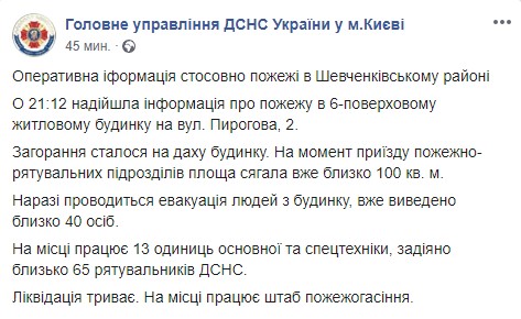 Скриншот: Facebook/Головне управління ДСНС України у м.Києві