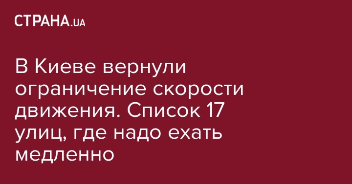 В Киеве вернули ограничение скорости движения. Список 17 улиц, где надо ехать медленно