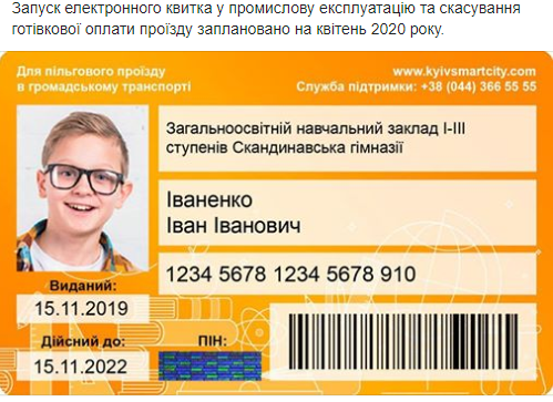 "Школьники Киева получат современный инструмент для жизни в разумном городе. Поскольку карта будет иметь функцию идентификации владельца, она станет электронным ключом ученика к различным сервисам и возможностям. Школьники смогут использовать карточку для бесплатного проезда в общественном транспорте и льготного входа в учреждения культуры", - цитируют Назарова на странице КГГА в соцсети.