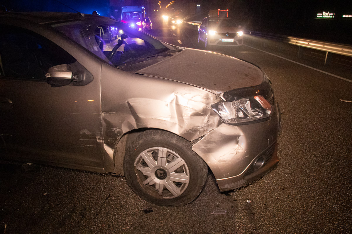 При неизвестных обстоятельствах BMW столкнулся с Renault на промежутке дороги между W220 и Viano, в результате Renault "догнал" минивэн, а BMW оказался в отбойнике.