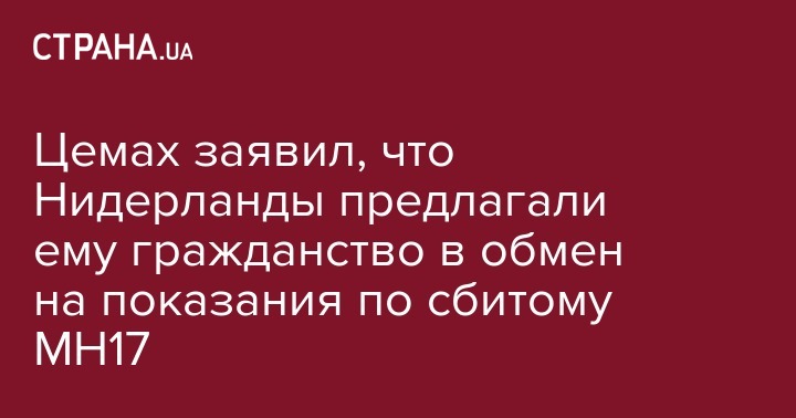 Подозреваемый в причастности к катастрофе малайзийского Boeing Владимир Цемах, который был отпущен Украиной в рамках обмена, утверждает, что представители Нидерландов предлагали ему гражданство в обмен на показания по делу о катастрофе.